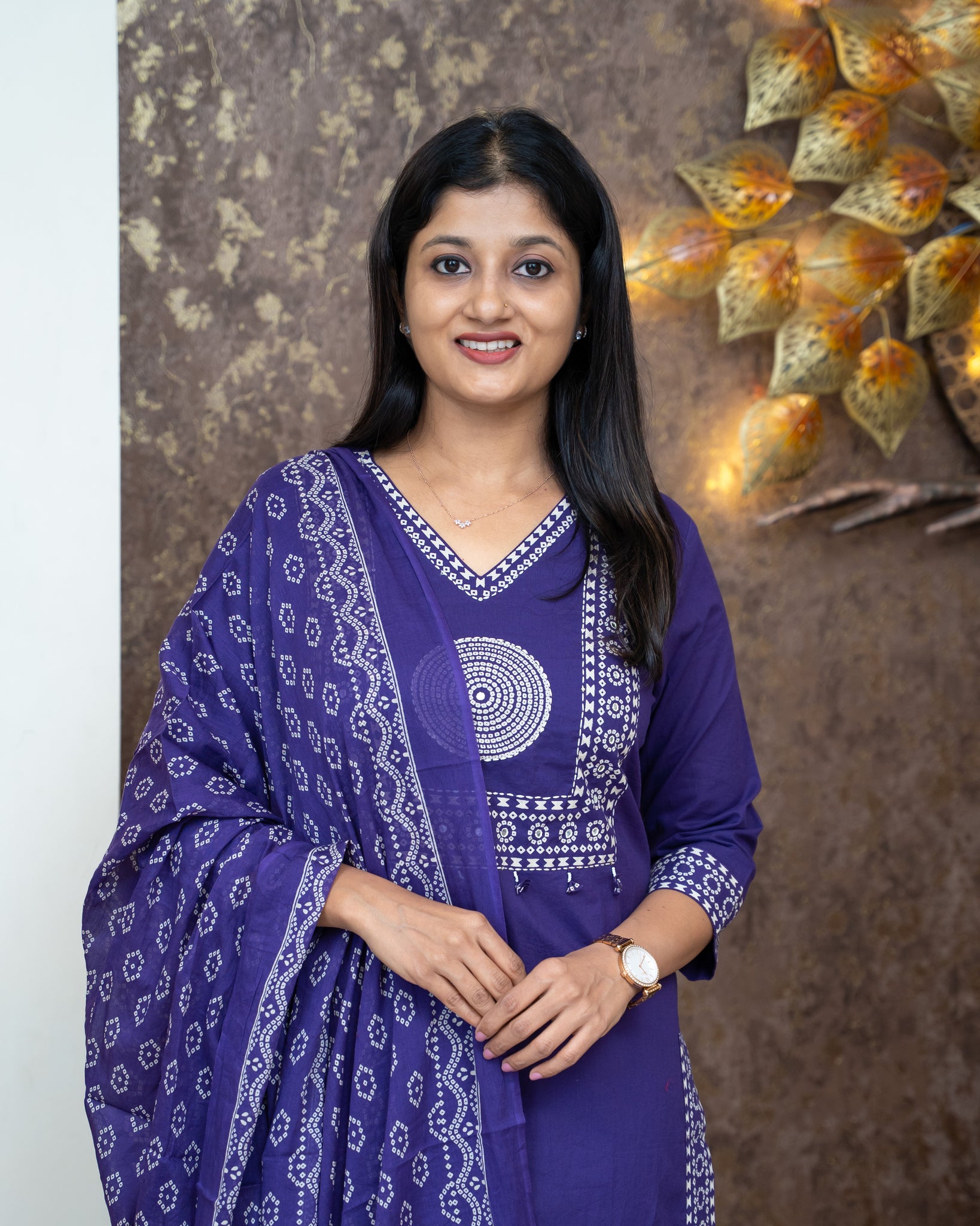 Dupatta: Mul cotton dupatta with allover printed detailing. Length: 2.20mtr