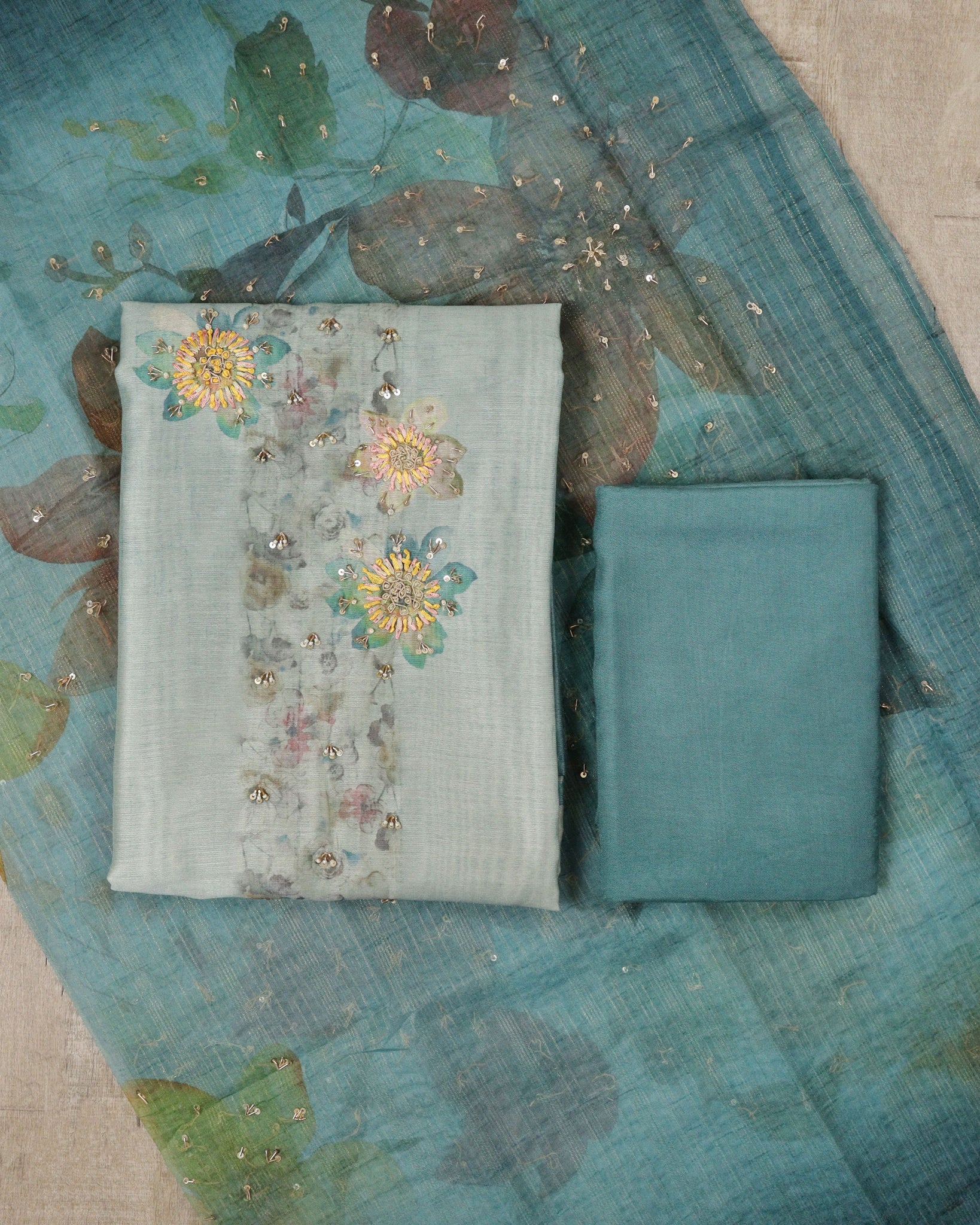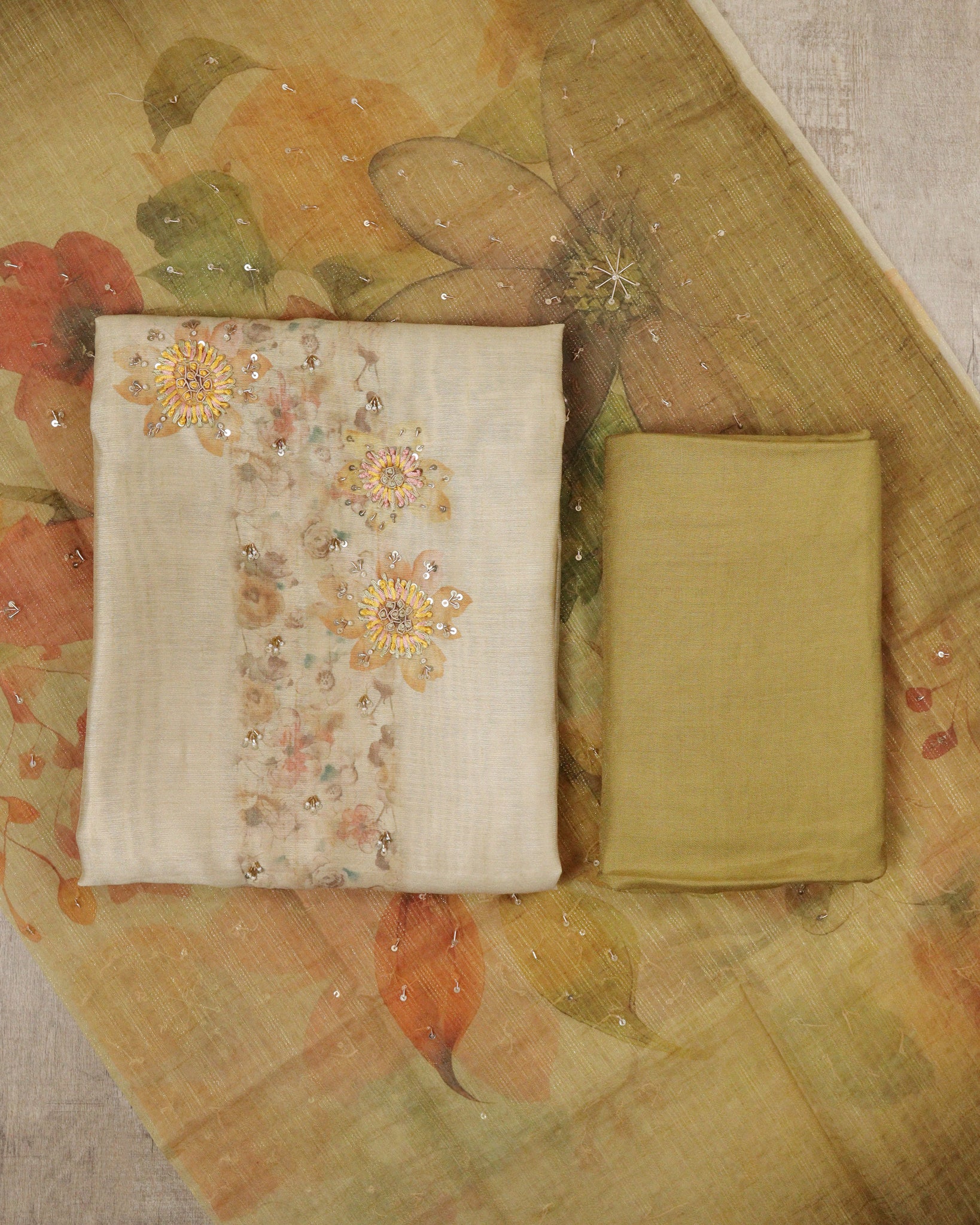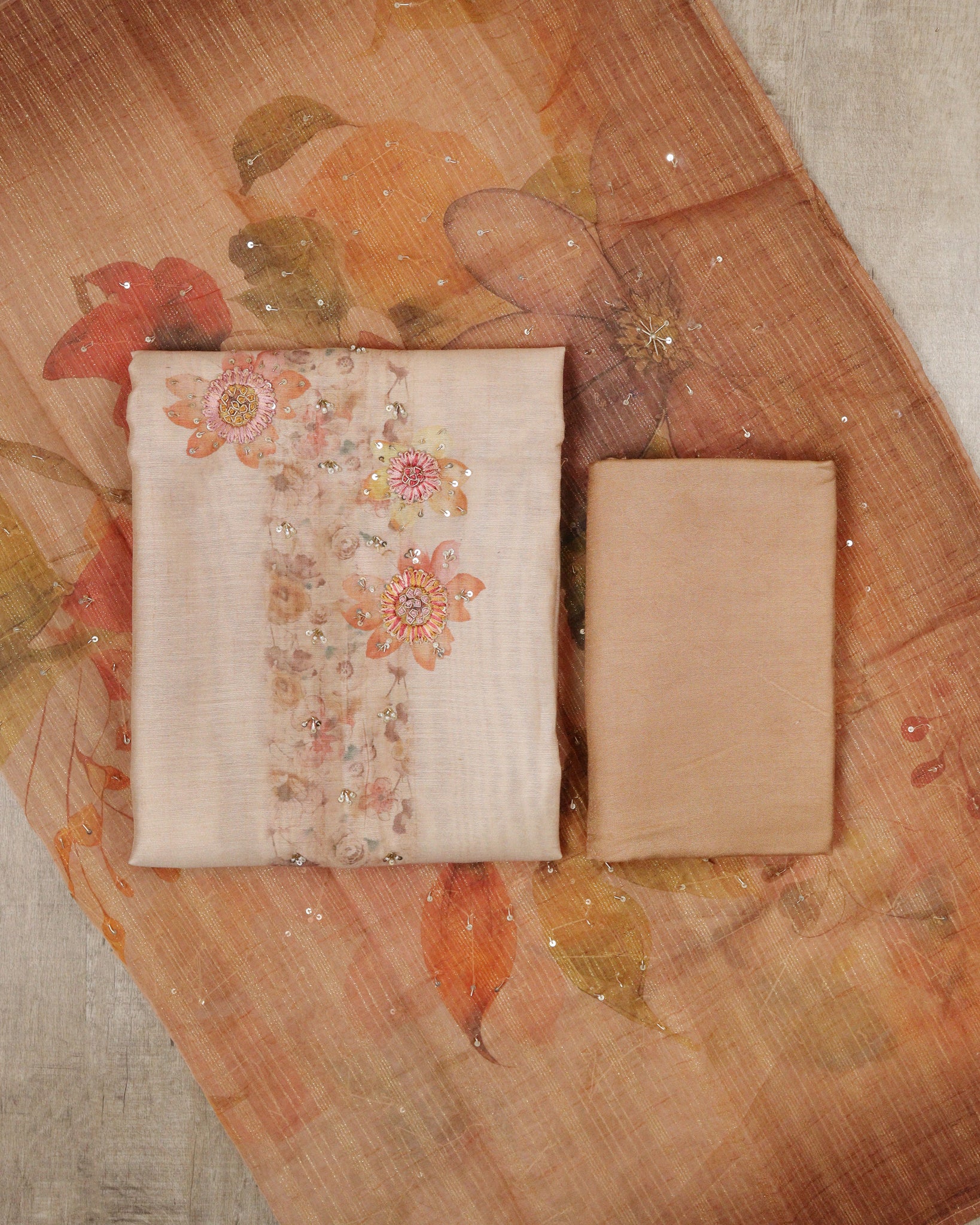 Dupatta: soft organza fabric with allover floral digital print highlighting hand work. length: 2.25mtr.