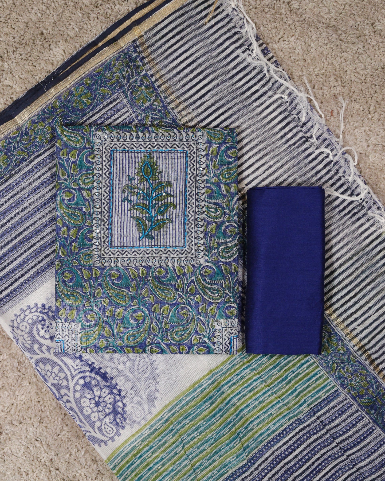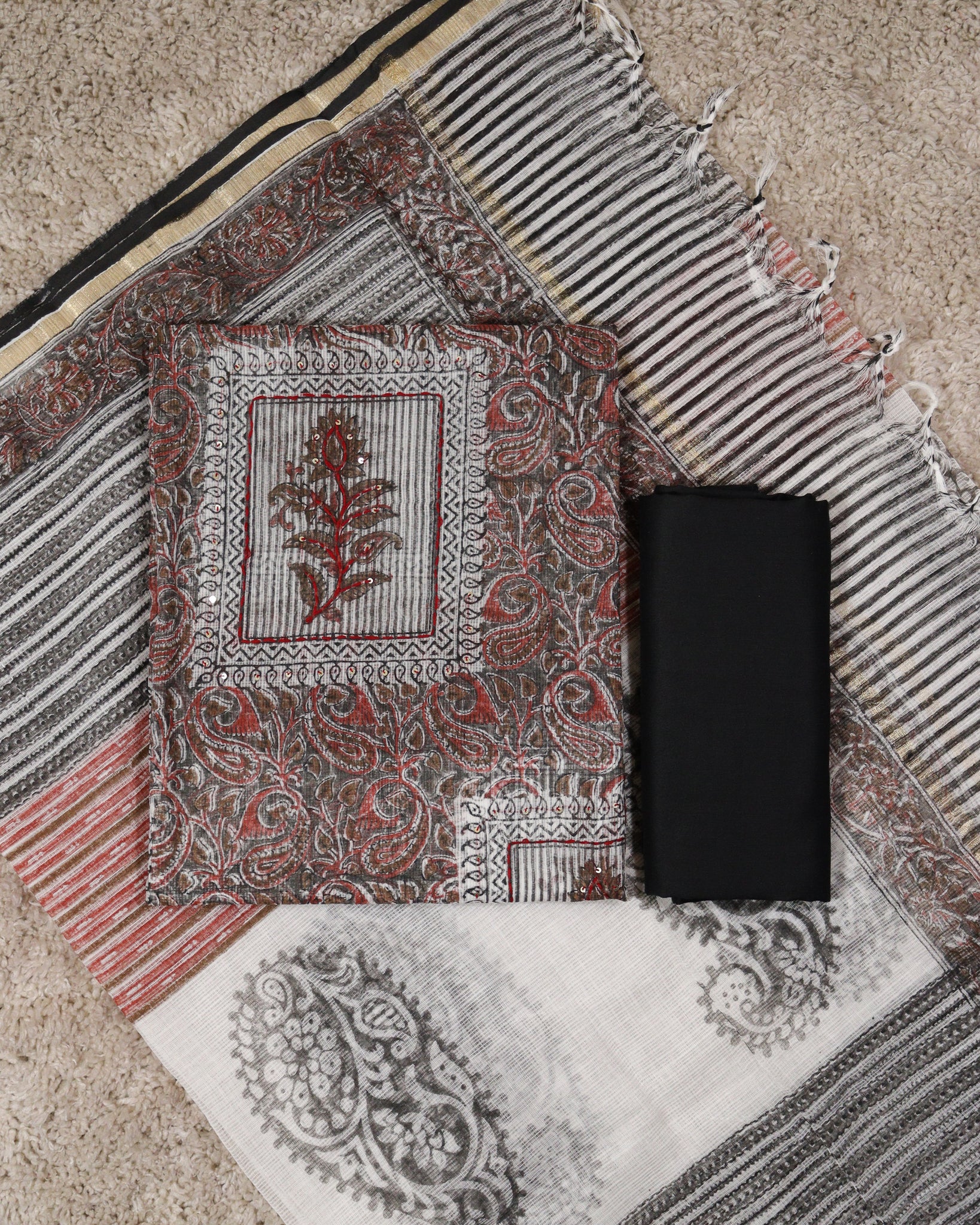 Top: Kota doria fabric with allover printed patterns. Highlighting hand work on front. Length: 2.50mtr