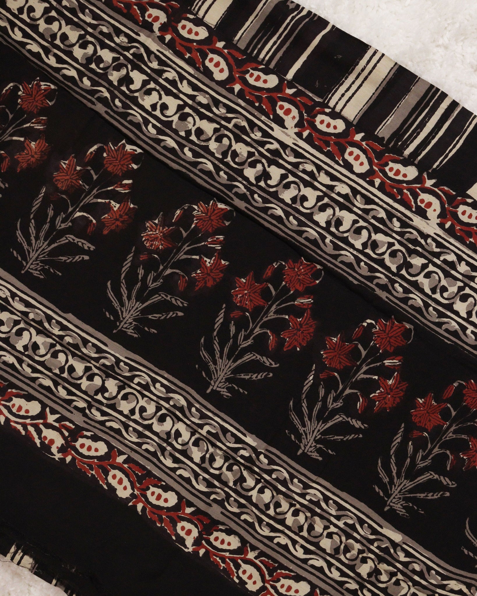 Dupatta: modal muslin silk fabric with allover strip and floral block print. length:2.25mtr.