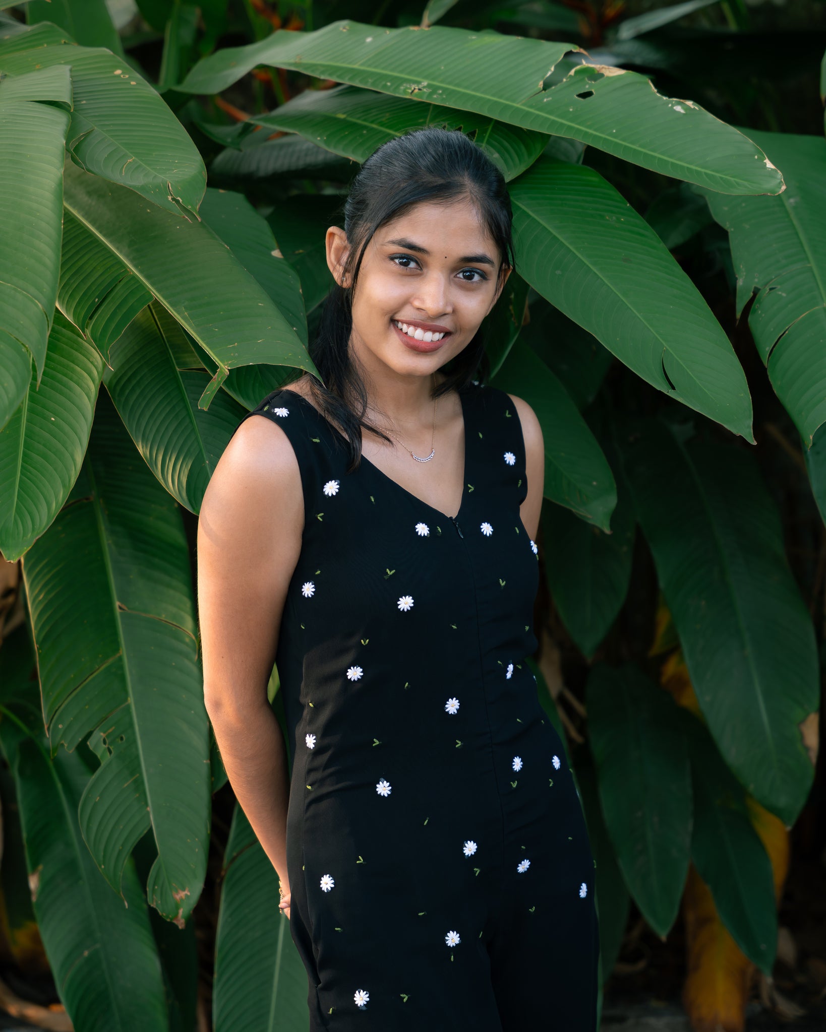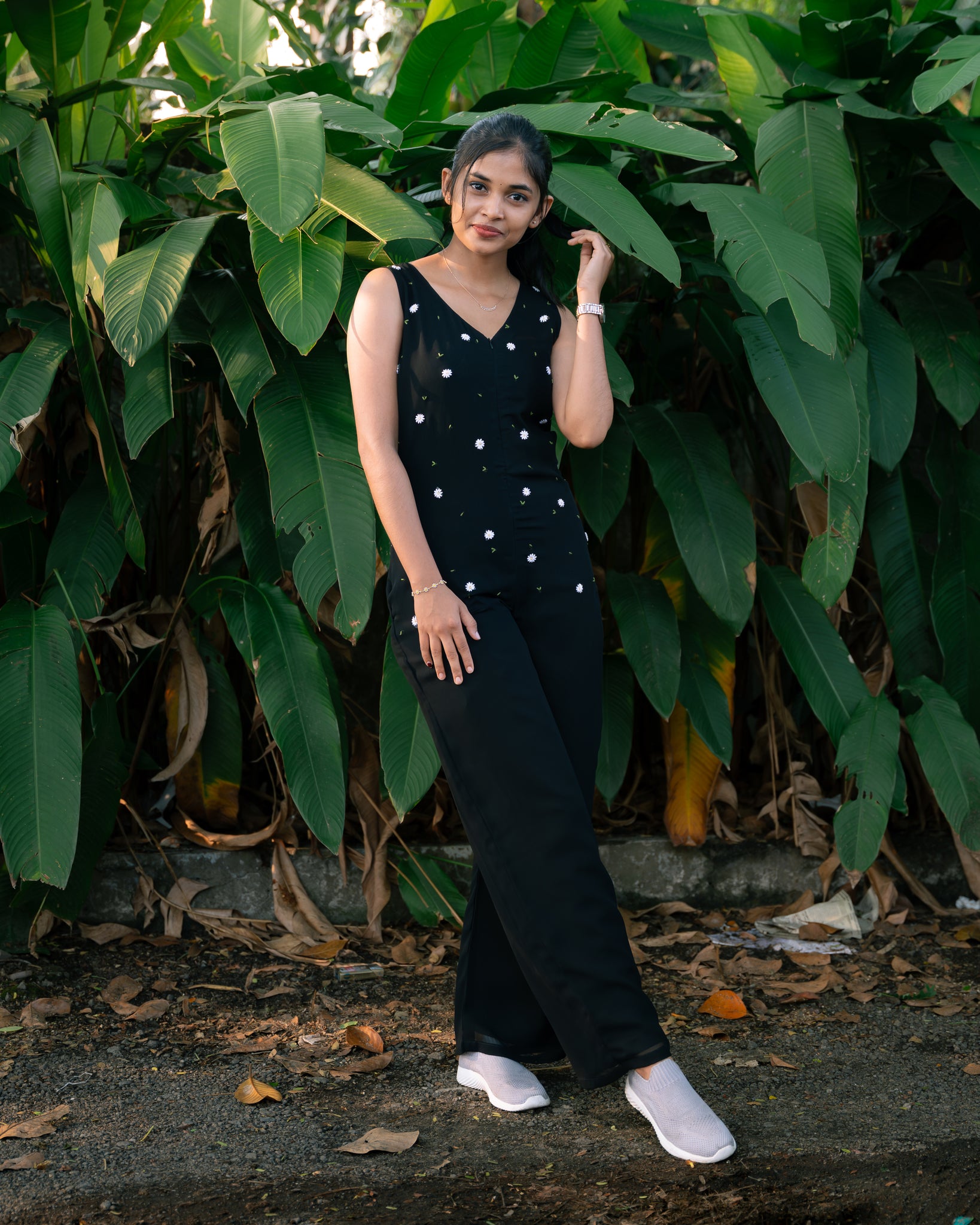 Scattered embroidery detailing till hip length. Front zip. One side pocket. With lining(crepe).