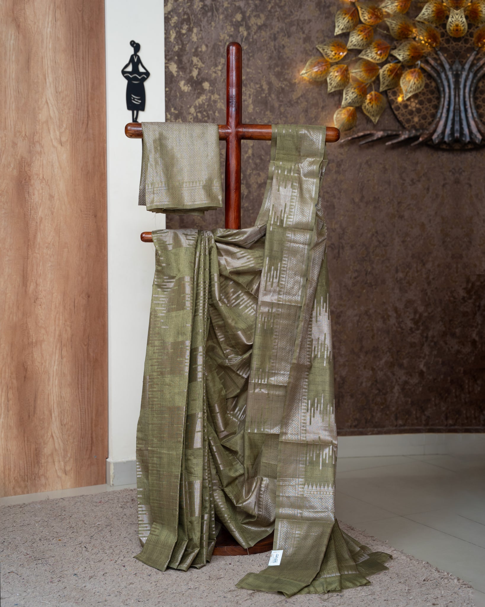 Saree: Allover geometric and abstract zari woven patterns and boarder. Length: 5.30mtr